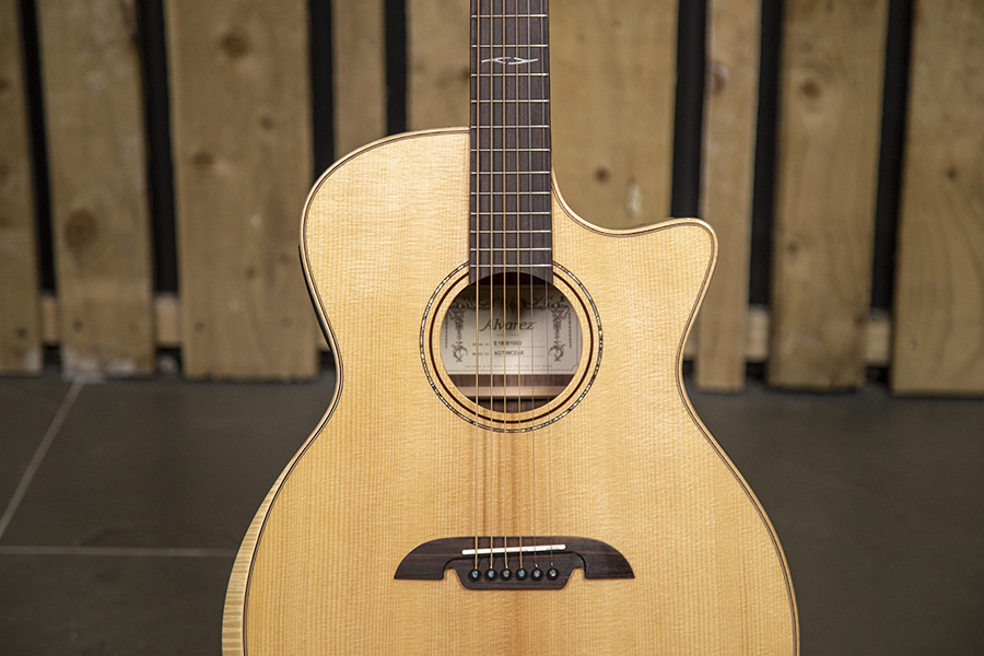 It’s immediately obvious when you listen to our video that the Alvarez is as good sounding as it looks – bright but never tinny, with good bass and lower mids which neither boom nor dominate. It’s a versatile sound which would work well with a lot of styles and is always a pleasure to play, our sample having a pleasantly low action with an very playable C neck profile.