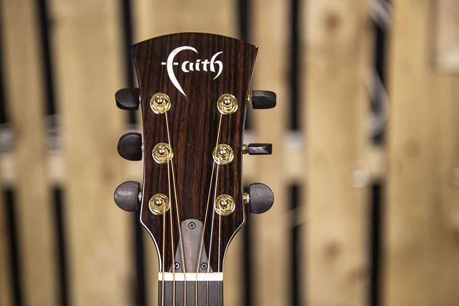 Faith guitars have earned a strong reputation over the years. Bravely, the company decided from its inception not to go head-on into the mass market for lower priced acoustic guitars but aimed to take on the big names – at least in terms of design, materials and build quality but taking advantage of manufacturing in Indonesia to offer exceptional value. In a way this was a gamble – it would be easy to look at a Faith and just assume it was another mass produced Far Eastern guitar at quite a high price, but that would be a mistake. Premium woods, expert design (by renowned luthier Patrick James Eggle) and manufacture by one of the best firms in the business mean that it would be more realistic to compare a Faith to one of the major brands in the acoustic guitar world.