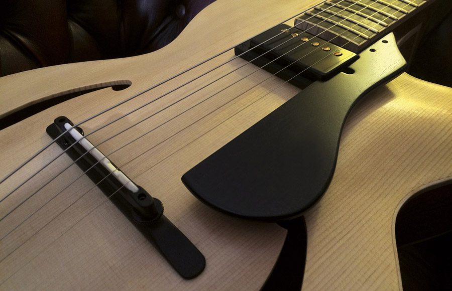 The Ambassador comes fitted as standard with a floating Kent Armstrong humbucker. But it can be fitted with a floating Dickinson or KRIVO humbucker or a set-in an OX4 handwound humbucker, with a hand profiled ebony pickup ring. But, as I am sure you can appreciate, everyone has their own taste when it comes to pickups.