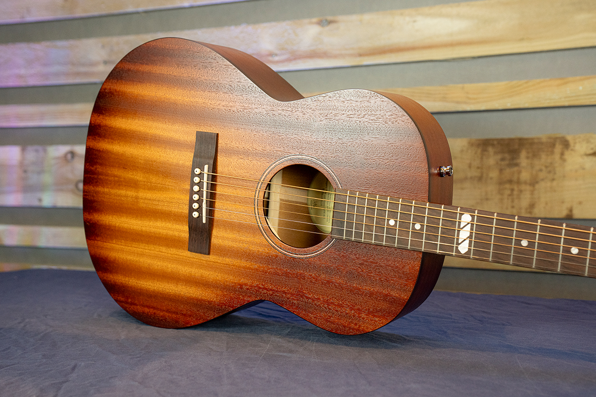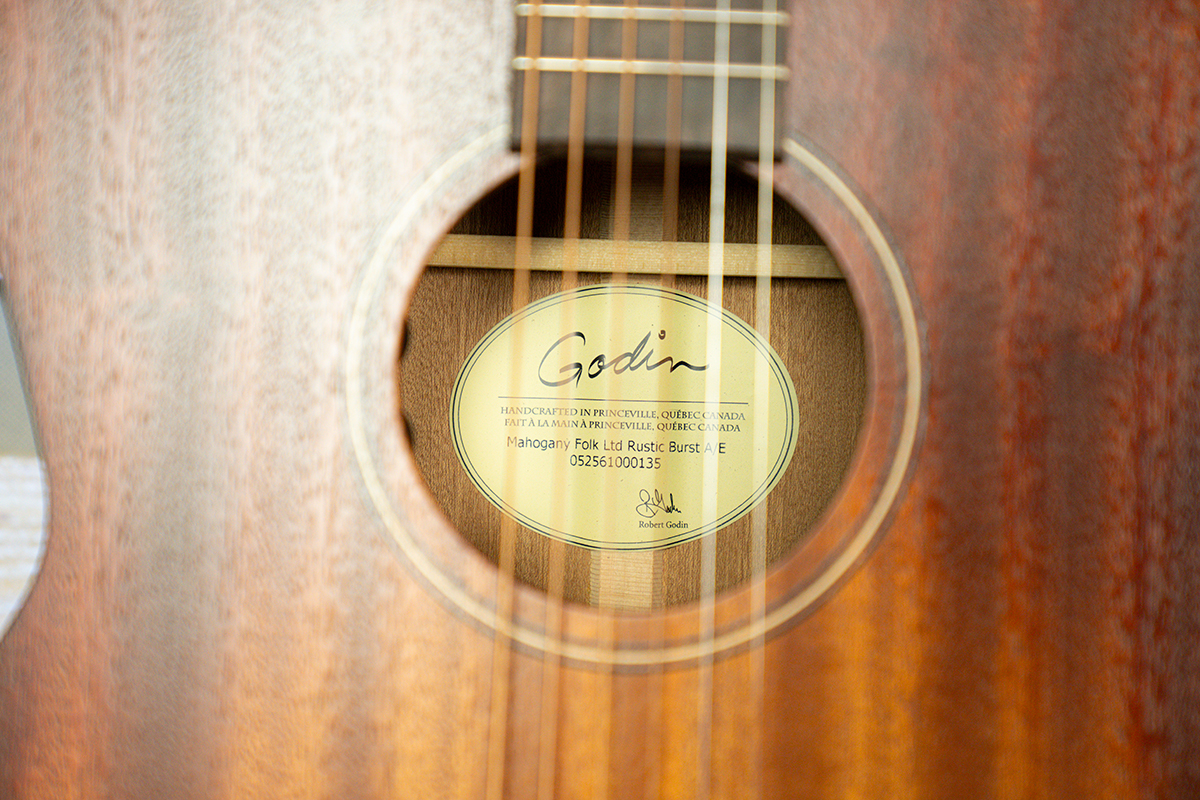 Godin Guitars Says…”The Godin Mahogany Folk Rustic Burst A/E is one of the latest additions to the Godin acoustic guitar line. Crafted in our Canadian Acoustic Atelier by our most experienced luthiers using only the finest tone woods. This Folk-sized guitar features a solid Mahogany top, back and sides. Mahogany is known for its warm and balanced tonal characteristics, and will appeal to blues, pop, country and fingerstyle players alike. In addition to its comfortable playability and exceptional tonal qualities, the Mahogany Folk A/E. In addition to its tonal qualities, the Godin Mahogany Folk Rustic Burst A/E is equipped with a Fishman Presys VT pickup, with the volume and tone controls conveniently accessible through the soundhole.”